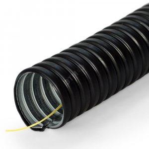 Краткое описание: Металлорукав РЗ в ПВХ изоляции, негорючий; D-усл.прохода 12 мм; IP66, t-раб.-40...+60˚С. Черного цвета. Для внешней прокладки. С протяжкой.