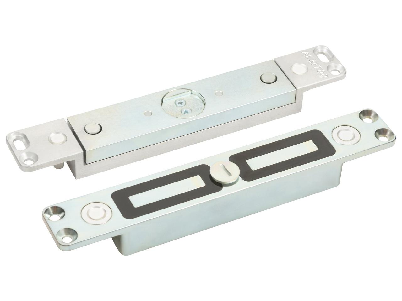 Врезной, сила удержания 700 кг, 12В/0,35 А, горизонтальное крепление, датчик Холла, геркон, -40...+ 40 °C, корпус 203x30x25 мм, якорь 203x30x25 мм, IP54.