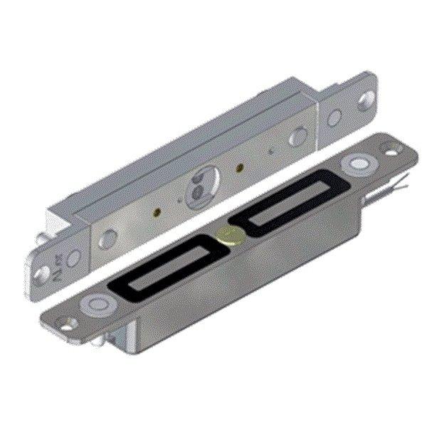 Врезной, сила удержания 400 кг, 24 В/0,15 А, вертикальное крепление, датчик Холла, геркон, -40...+ 40 °C, корпус 201,5x25x25 мм, якорь 201,5x25x25 мм, IP54.