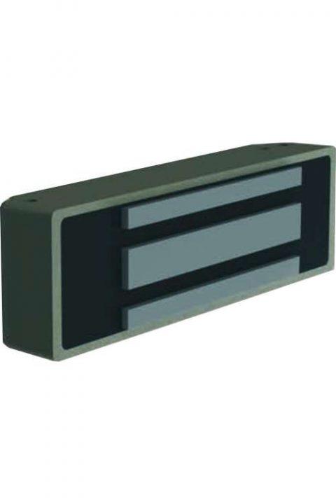 Замок электромагнитный, сила удержания 300 кг, встроенное устройство для снятия остаточной намагниченности. Корпус из ударопрочного, атмосферостойкого поликарбоната. 12 В , 0,5 А, 190х58х38 мм. Уголок 40х40 мм в комплекте.