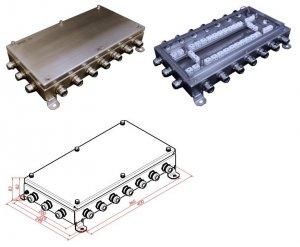 Краткое описание: Коробка монтаж.огнестойкая, керам.колодка 64х3мм², 18 вводов, IP66, t-раб.-40…+60°C, габ.размеры 200х400х60 мм, нержавеющая сталь