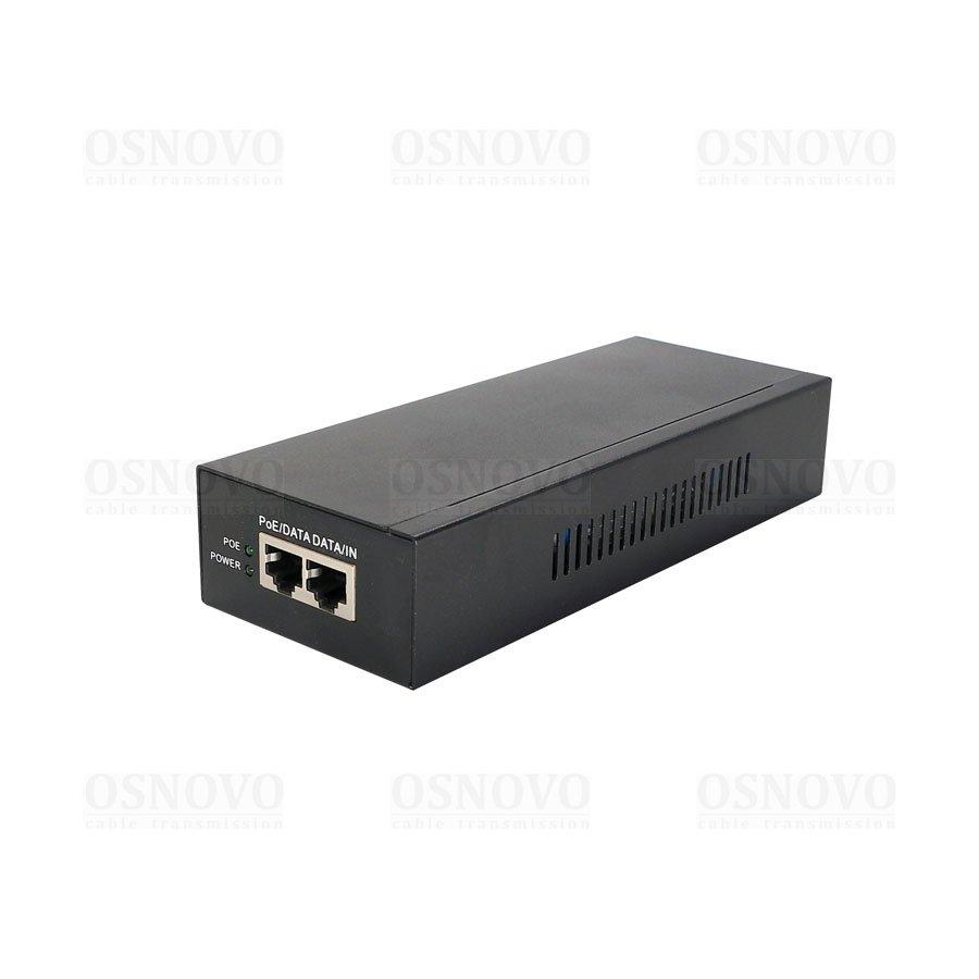 Инжектор PoE Gigabit Ethernet на 1 порт; 1xRJ45(10/100/1000 Base-T), 1xRJ45(10/100/1000 Base-T, PoE, IEEE 802.3af/at/bt) до 65Вт; встроенная грозозащита 3кВ; AC100-240В; 70x35x180мм; -10...+65°С.
