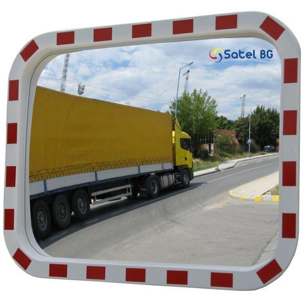 Зеркало прямоугольное уличное сферическое с отражающей окантовкой, размер 400х600 мм., радиус выпуклости 1250 мм, h выпуклости 47,4 мм, комбинированное расстояние 22 м
