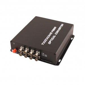 Передатчик видео HDCVI/HDTVI/AHD/CVBS 8 каналов по одномодовому оптоволокну до 20км; Максимальное разрешение 1080p; Рабочая длина волны 1310нм (одно волокно); Оптический разъём: FC; DC5В/2000мА(БП в комплекте); - 40°...+75°C; 167x45x172мм