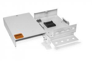 Бокс оптический универсальный, настенный на 4 порта (SC, duplex LC, ST, FC) с держателем для 8 КДЗС, фиксатором центрального силового элемента, зажимом для организации кабеля, стяжками (без пигтейлов и проходных адаптеров).