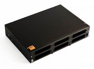 Бокс оптический универсальный 19" выдвижной, с полкой, от 8 до 48 портов (SC, duplex LC, ST, FC), со сплайс пластиной, без пигтейлов и проходных адаптеров, 2U, черный.