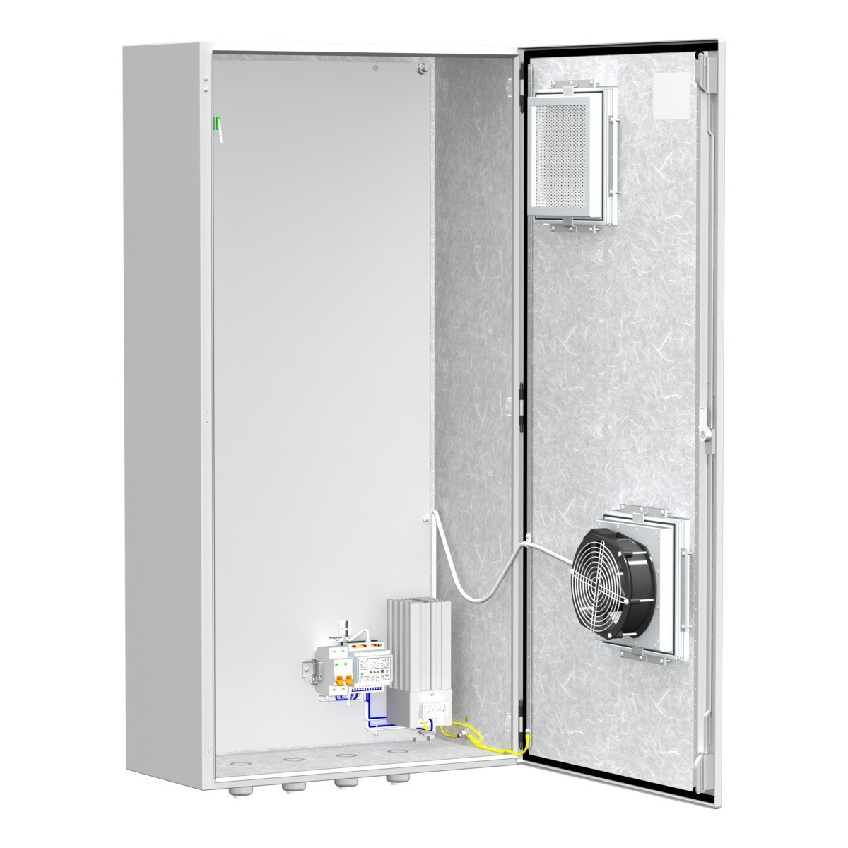 Кроме того в изделие предусмотрена защита от холодного запуска аппаратуры - автоматическое отключение питания установленной в нём аппаратуры в случае понижения температуры внутри термошкафа ниже заданной и автоматическое включение питания после повышения температуры до заданного значения.