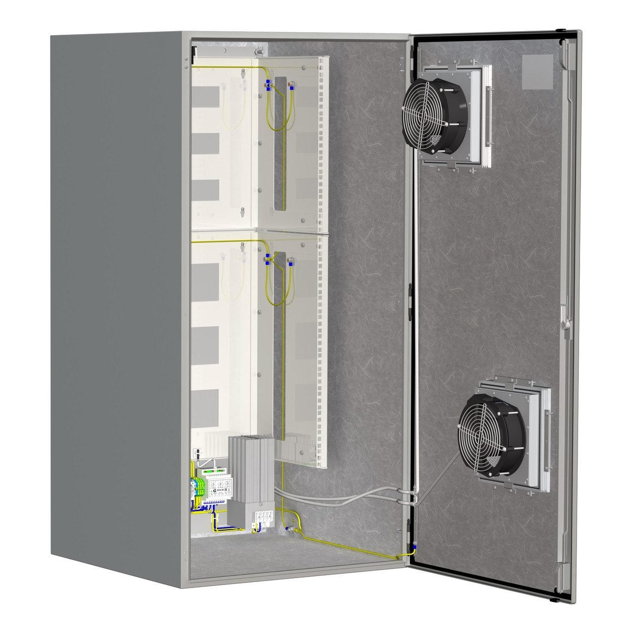 Термошкаф оборудован: - блоком управления климатом (БУК-3В), предназначенным для управления холодным запуском аппаратуры, установленной в термошкафу, обогревом и вентиляцией;-двумя обогревателями термошкафов ОТШ-300, оборудованными встроенными биметаллическими выключателями, ограничивающими температуру поверхности радиатора до +90°С;- вентиляторной системой охлаждения, выполненной в вандалоустойчивом корпусе;- тамперным контактом для сигнализации о несанкционированном доступе.