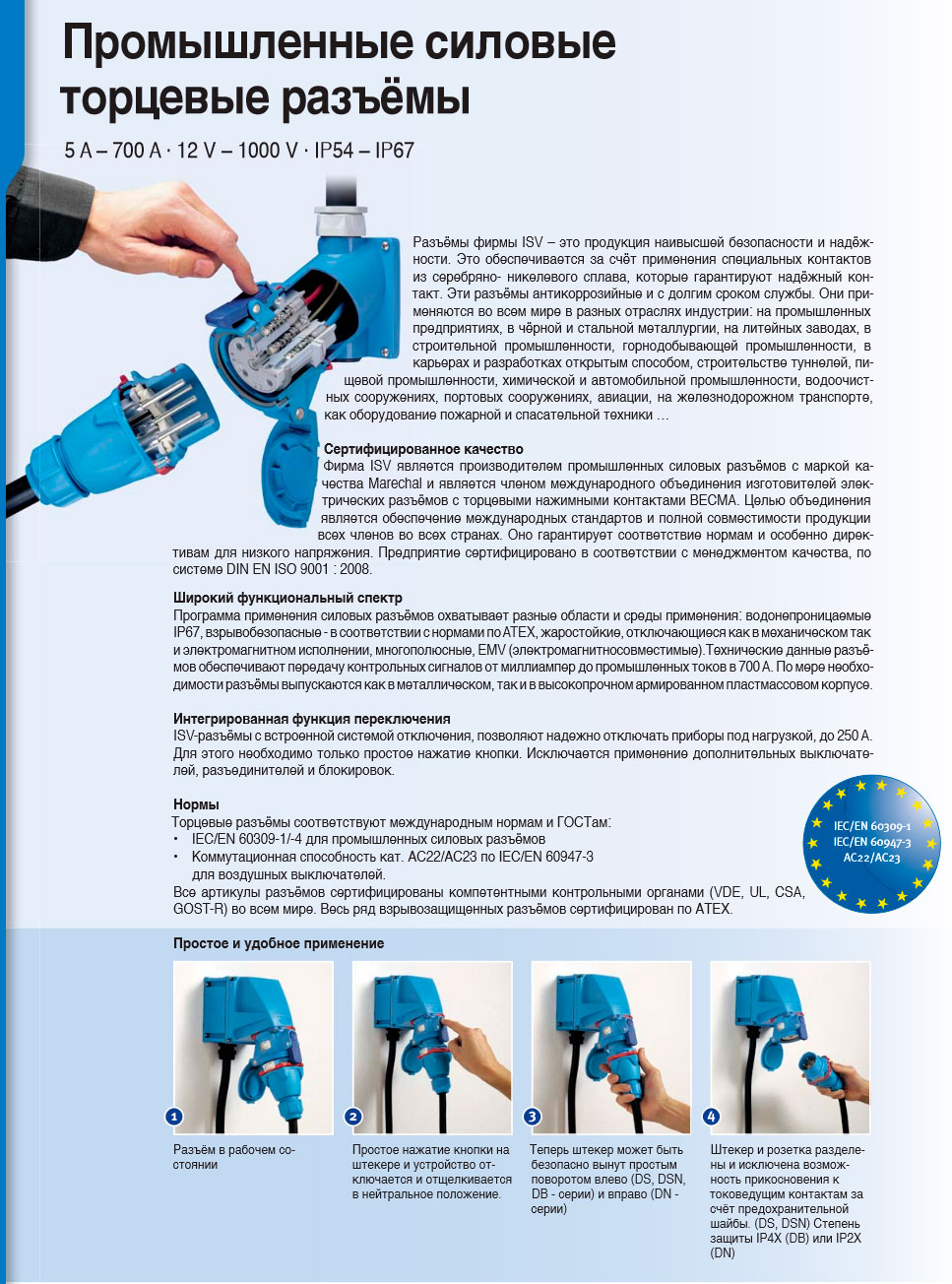 Промышленные силовые торцевые разъёмы