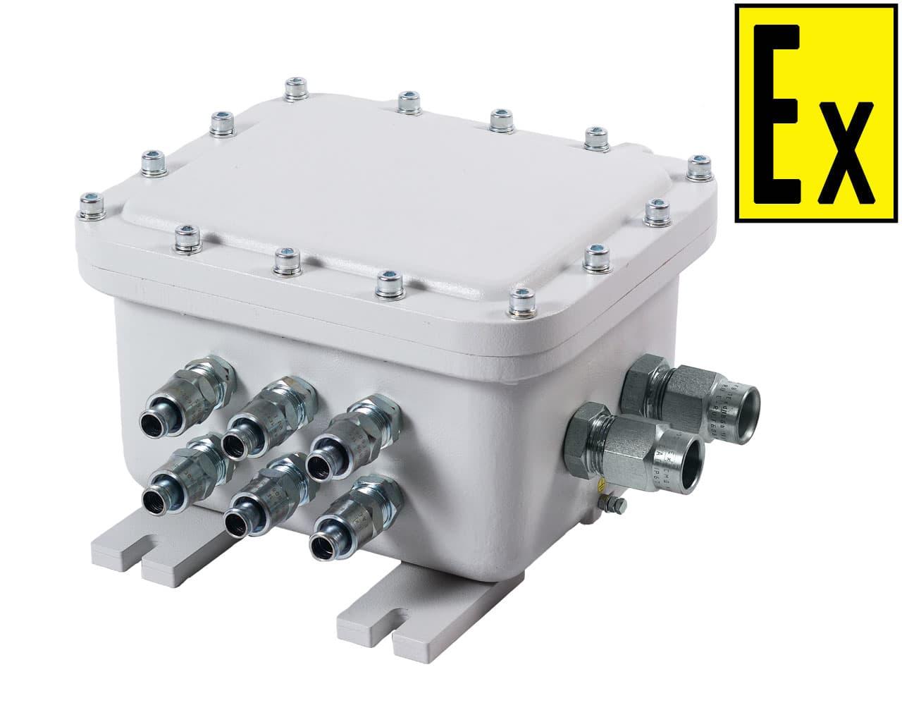 Коробки обеспечены следующими видами взрывозащиты: ГОСТ IEC 60079-1-2013 "взрывонепроницаемые оболочки "d"" и ГОСТ IEC 60079-31-2013 оборудование с защитой от воспламенения пыли оболочками "t".