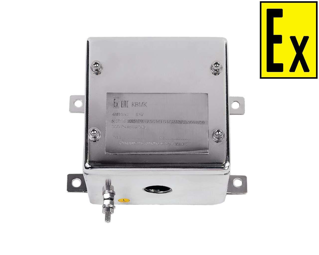 Коробки обеспечены следующими видами взрывозащиты: ГОСТ Р МЭК 60079-7-2012 Повышенная защита вида "е", ГОСТ 31610.11-2014 (IEC 60079-11:2011) "искробезопасная электрическая цепь "i", ГОСТ IEC 60079-1-2013 "взрывонепроницаемые оболочки "d"" и ГОСТ IEC 60079-31-2013 оборудование с защитой от воспламенения пыли оболочками "t".